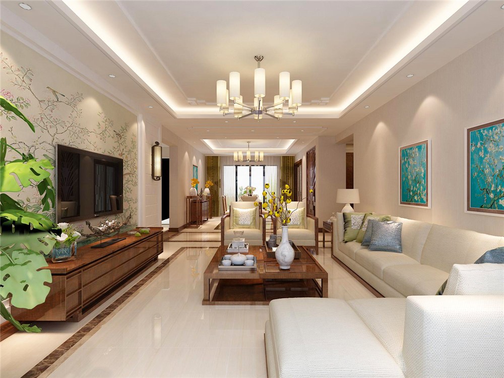 中糧隆璽洋房166平新中式風(fēng)格裝修效果圖--水光瀲滟晴方好