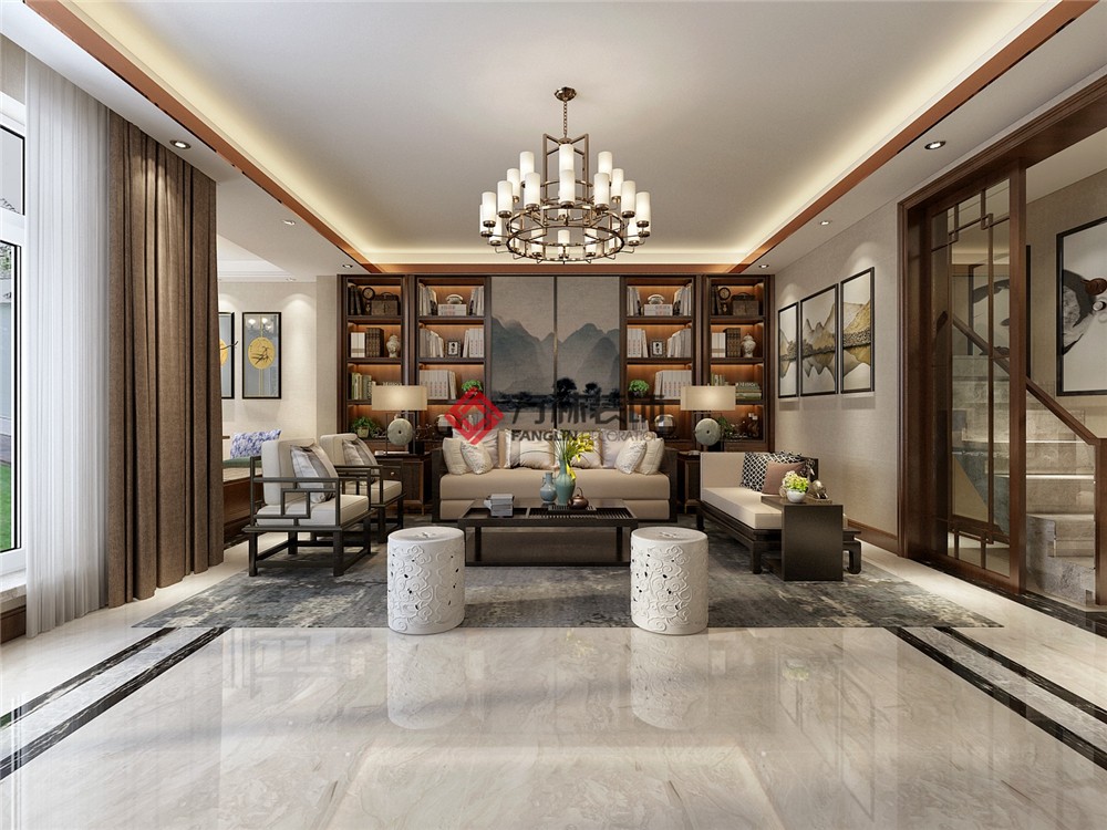 新中式書房里散發(fā)著淡淡的木香,只需心境空靈,少幾分濃墨重彩,多幾分雅致清寧,并在此感悟生命的智慧。采光井中的陽光暖暖的投射進(jìn)來,小景營造其中,少一些繁雜,多一些趣味。一呼一吸,一吐一納之間感受自然的韻律。一抹寫意,幾許禪意。勾畫著云端山川,靜下心感受那擲地有聲的行云流水。