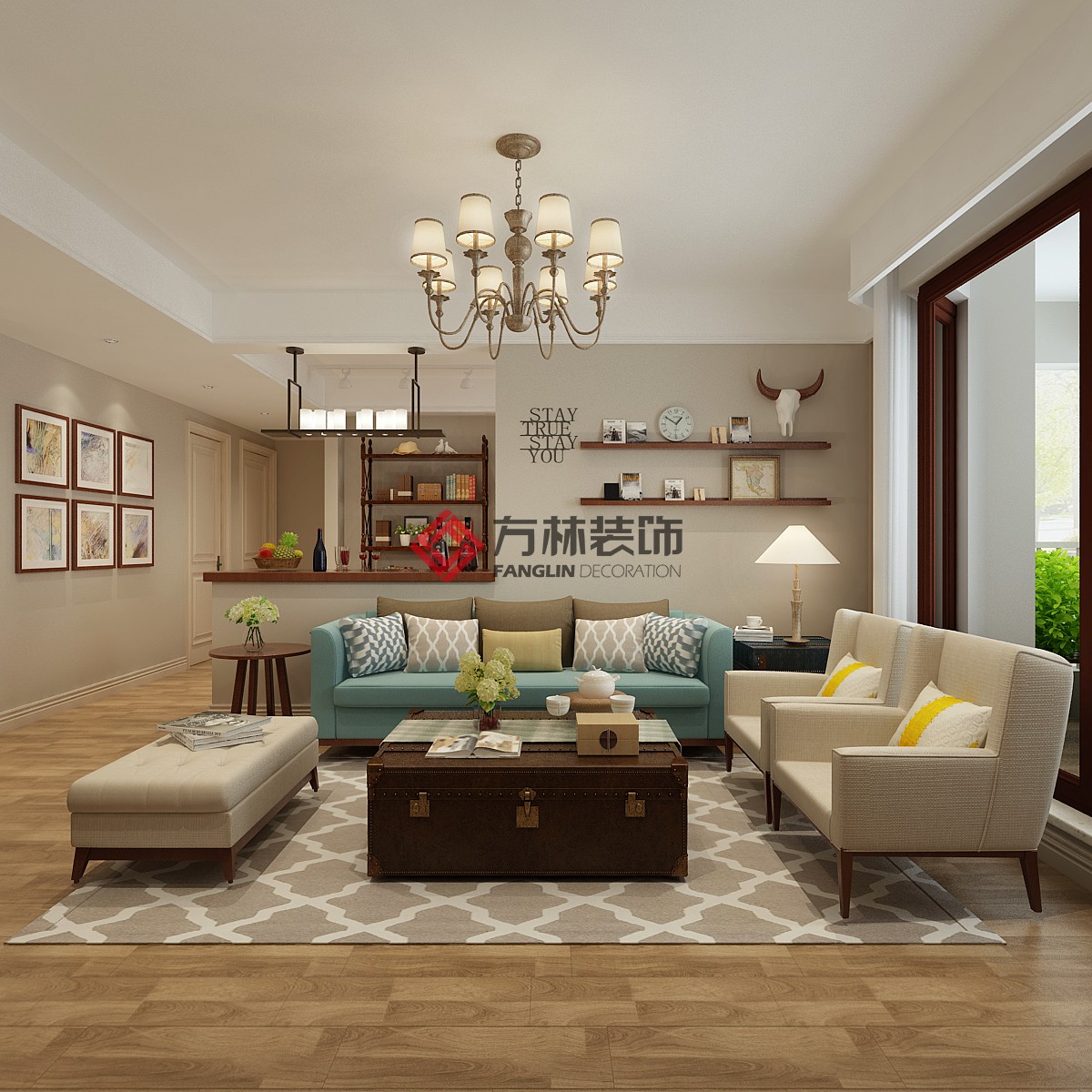 美國是一個崇尚自由的國家,這也造就了其自在、隨意的不羈生活方式,沒有太多造作的修飾與約束,不經意中也成就了另外一種休閑式的浪漫,藍色與乳白色相間的沙發成為室內的亮點,溫馨而美好